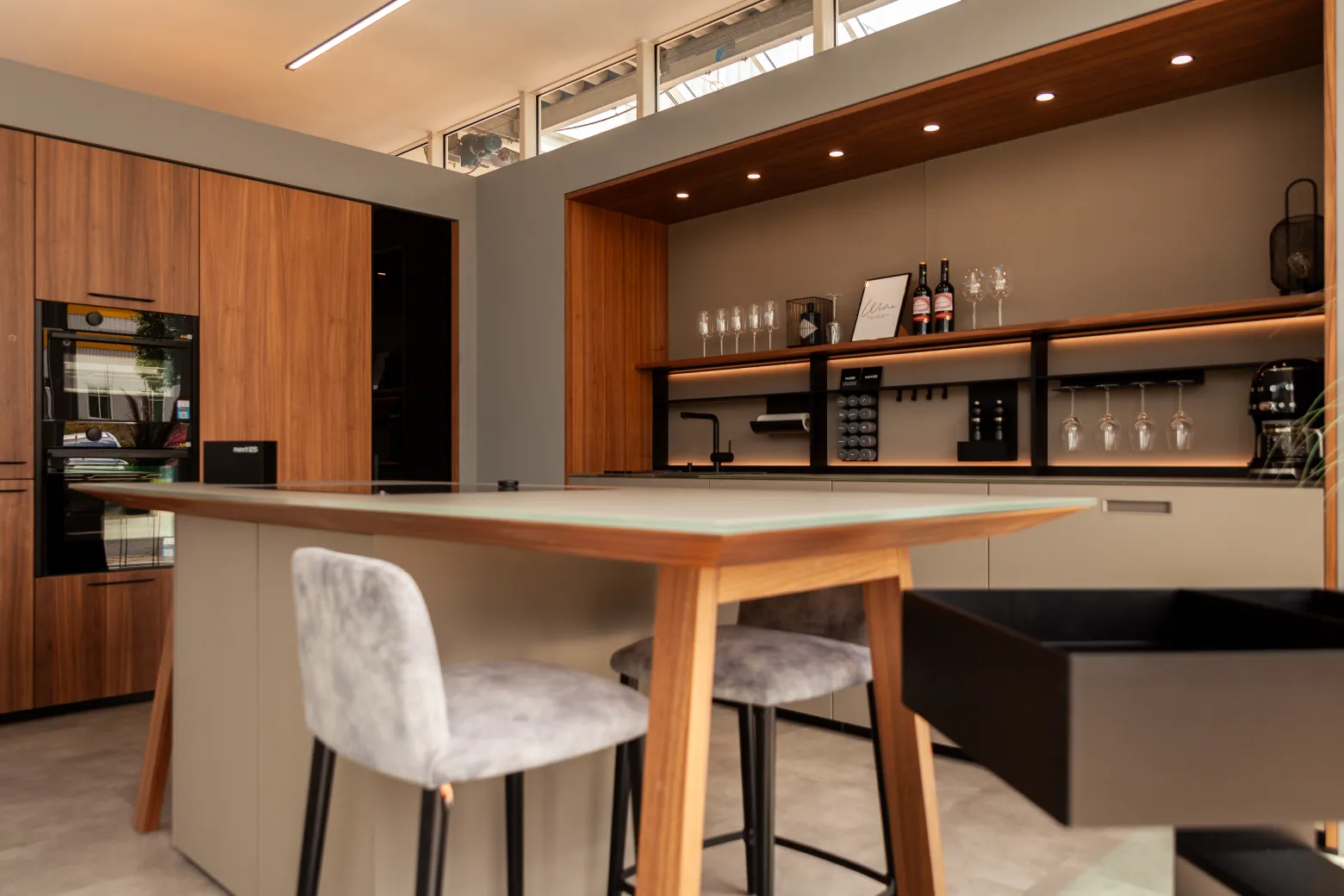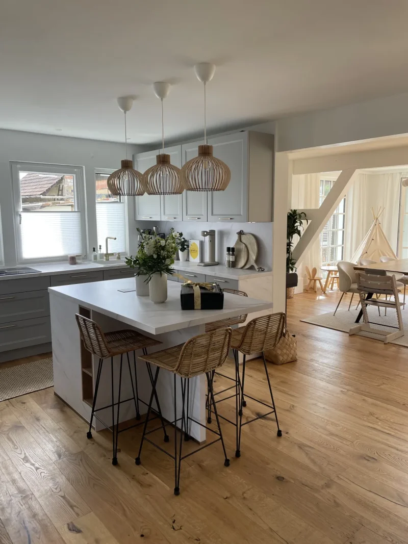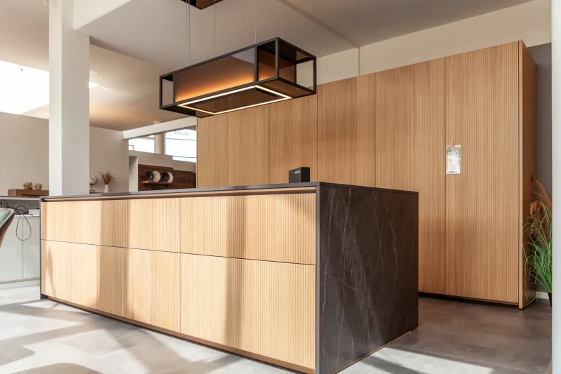 Abluft/Umluft klären wir im Planungsprozess genau – inklusive Schachtführung, Querschnitten und Platzbedarf. Ein detailliertes Aufmaß (idealerweise 3D) stellt sicher, dass Anschlüsse, Steckdosen und Nischenmaße passen. So entstehen Traumküchen, die im Alltag tatsächlich funktionieren – nicht nur auf dem Rendering.