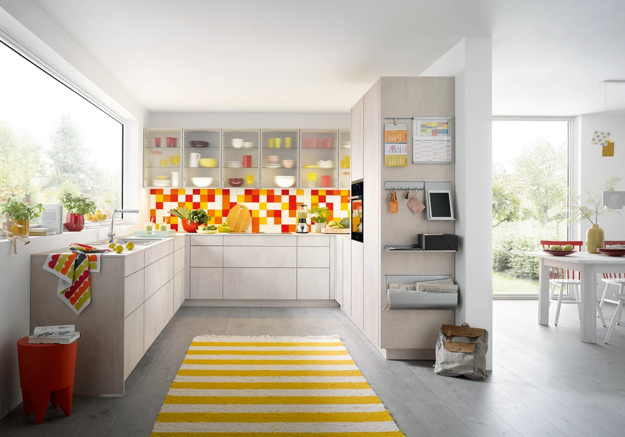 In dieser modernen Küche mit beeindruckender Insel in Betonoptik vereinen sich höchste Ansprüche an das Ambiente und das Genießen des Lebens mit den Liebsten. Die markante Betonoptik verleiht der Küche einen urbanen Charme, während intelligente Stauraumlösungen und hochwertige Geräte für Funktionalität sorgen. Hier wird das Kochen zu einem Vergnügen und das gemeinsame Beisammensein zu einem besonderen Erlebnis. Ein stilvolles und einladendes Paradies für kulinarische Freuden und kostbare Momente mit Familie und Freunden.